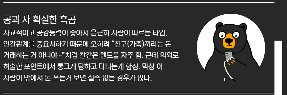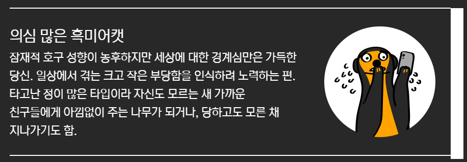 100% 맞는 말은 아니지만 즐겁게 호구 성향 테스트 해보면서 하루 마무리 해보는 것도 좋겠네요
