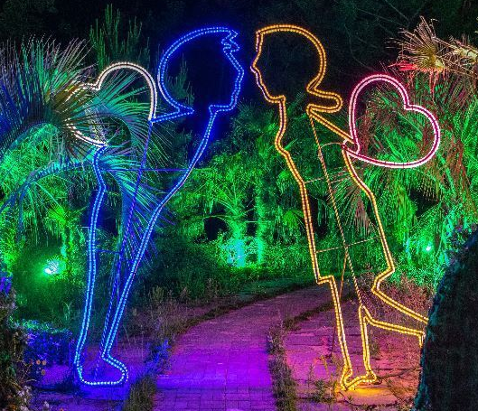 대형 빛 나무는 밤에 보는 식물원 산책을 느낄 수 있다는 것