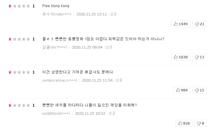 지난달 25일 개봉한 최미역행은 11월 30일 현재 1점대의 평점을 기록하고 있네요