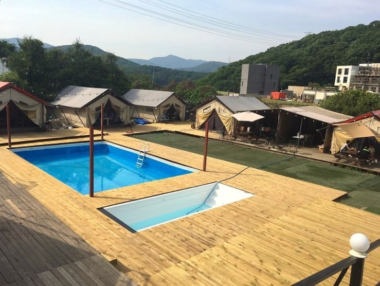 글램핑과 카라반 캠핑을 동시에 즐길 수 있으며 여름에는 수영장도 운영하고 있어요.
