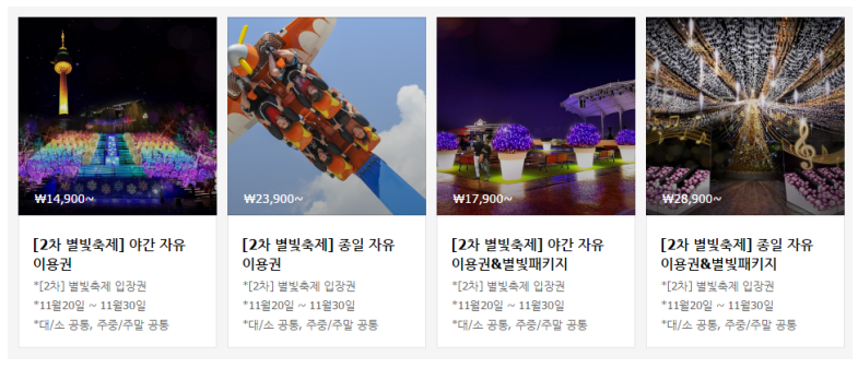 이월드 별빛축제 TIP. 1. 오후 5시 이후에 입장하면 야간중복 할인 적용 |