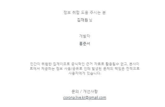 하지만 코로나19를 이겨내기 위해서 노력하는 의료진과 모든 사람 그리고 코로나 라이브 개발자 홍준서 님과