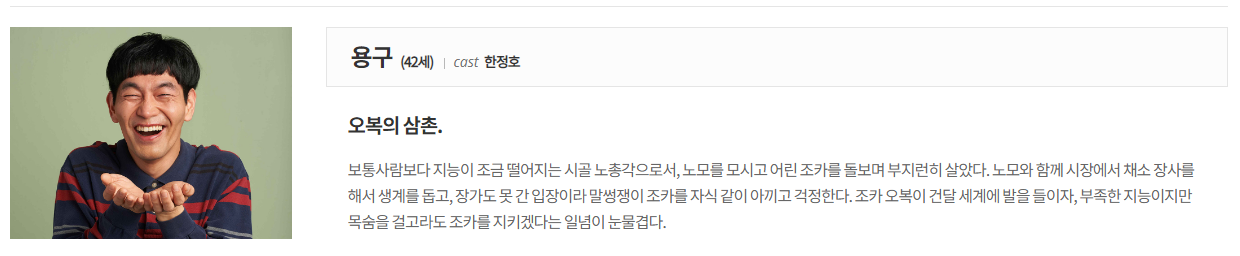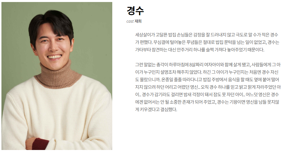 밥이되어라 등장인물에 대한 분석 입니다, 홈페이지에서 가져 왔습니다.
