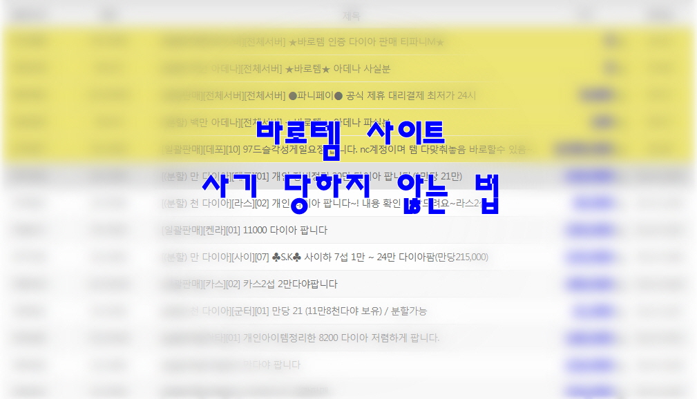 게임을 자주 하다보니 아이템 거래를 많이 하시는 분들도 있겠지만 아이템 거래가 처음이라 많이 어려워 하시는 분들을 위한 바로템 사이트 에서 사기 당하지 않고 거래 하는 법~ 아래의 방법대로 차분히 진행하면서 따라하시면 쉽고 빠르게 아이템 거래가 가능합니다.