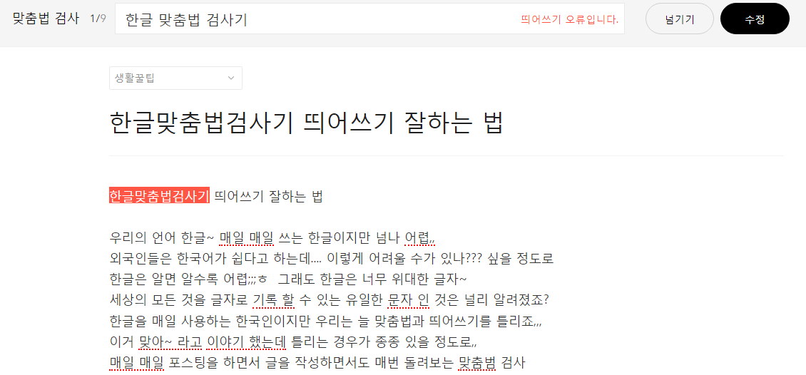 티스토리 한글맞춤법검사기는 띄어쓰기 검사기와 맞춤법, 오탈자 검사에 능합니다.