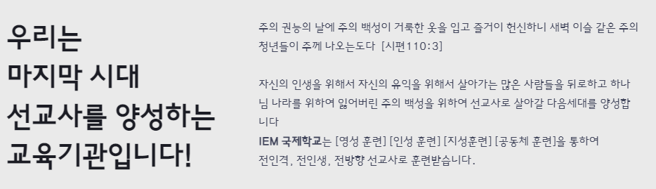 선교사를 양성하는 교육기관으로서 주의 백성을 위하여 선교사를 양성한다고 나와 있습니다.