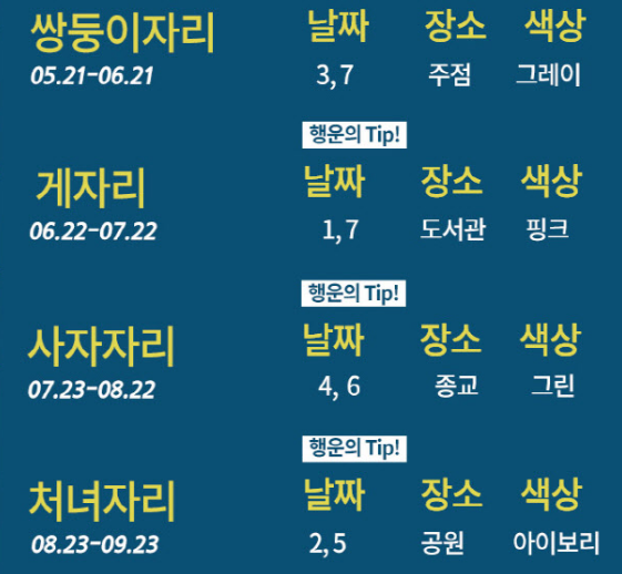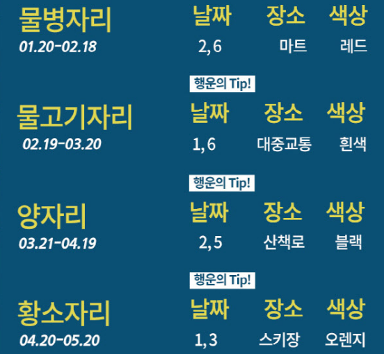 날짜와 장소 색상 행운 팁도 꼭 확인!!!