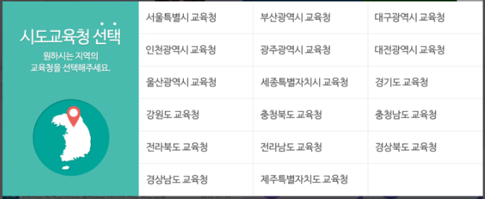 그 다음으로는 내가 위치 하고 있는 해당 지역의 교육청을 선택!