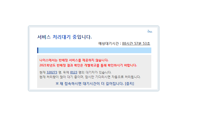 반배정 정보를 확인 할 수 있다고 하오니 대기시간이 너무 길다고 생각되시는 분들은