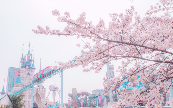 테마별로 즐거운 볼거리가 있지만 또 하나의 매력 포인트는 벚나무가 피는 봄입니다.
