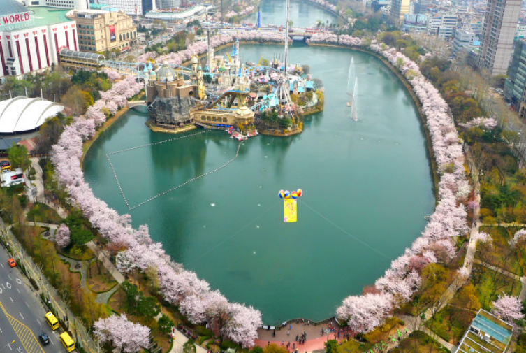 서울 송파구 잠실에 위치한 석촌호수에는 1000그루의 왕벚꽃나무가 호수를 빙 둘러 싸고 있습니다.
