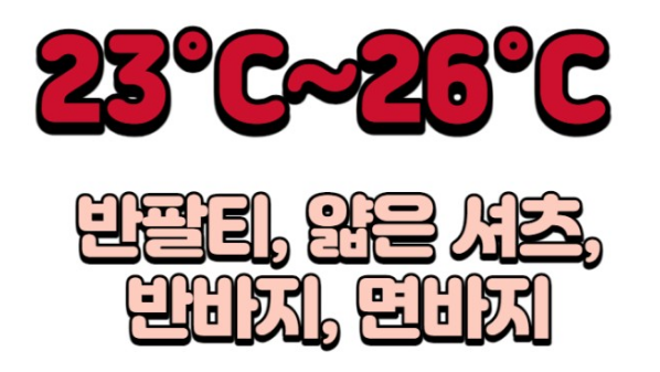 기온별 코디 : 반팔, 얇은 셔츠, 반바지, 면바지