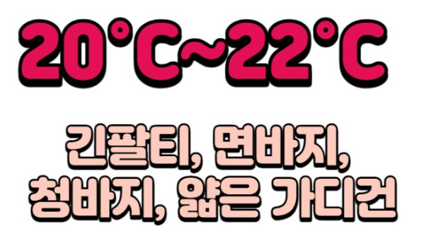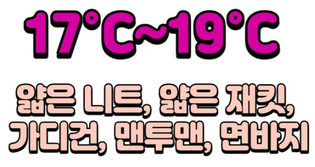 온도별 코디 : 얇은 니트, 맨투맨, 가디건, 청바지, 면바지