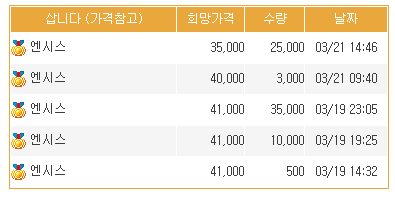엔시스 장외주 : 3만윈~ 4만원 대 형성