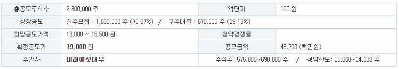 수요예측 공모가 : 19,000원