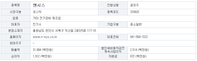 상장일 : 2021년 4월 1일 코스닥 상장 예정(엔시스 333620)