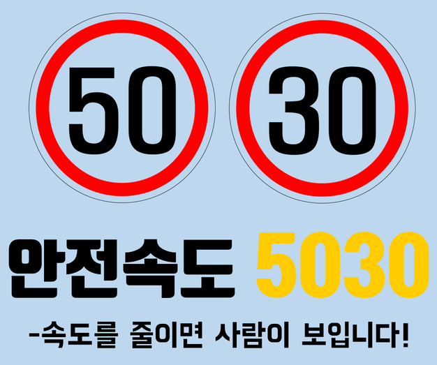 안전속도 5030 느린 속도처럼 보이지만, 귀중한 생명을 살릴 수 있는 안전한 속도입니다