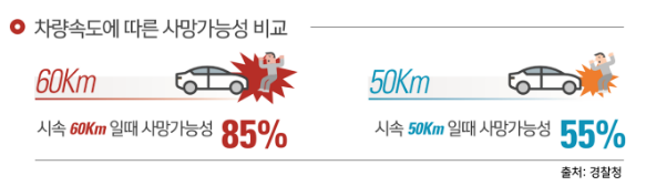60km에서 50km 속도하향시 사망가능성 30% 이상 감소하기도 하죠