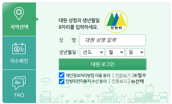 지자체 홈페이지 또는 민방위 교육센터 홈페이지에 접속을 한 후에 간편하게 로그인!!!