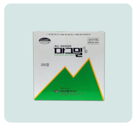 임산부 변비약으로 잘 알려진 마그밀정은 변비 이외에도 위, 십이지장궤양, 위염, 위산 과다시에 먹으면 완화가 가능하죠