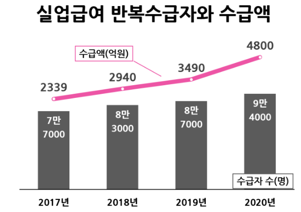 이에 실업급여 반복수급을 하는 사람들이 늘고 있습니다.