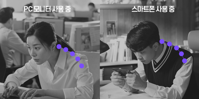 이러한 행동들이 반복이 되면 거북목증후군과 함께 목디스크 예비 환자의 길에 들어 설 수 있죠
