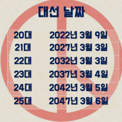 2022년 대선 날짜가 정해짐에 따라서 만 18세인 2004년 3월 10일생 까지 투표권이 주어집니다.