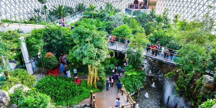 거제정글돔안에는 중국의 장가계를 모티브로 한 석부작 계곡과 아열대 식물 등