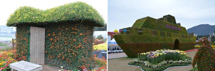 돌고래, 돛새치, 상어, 문어 등 과 같이 거제의 해양관광도시를 상징하는 조형물을 국화로 만들어서 의미를 더하고