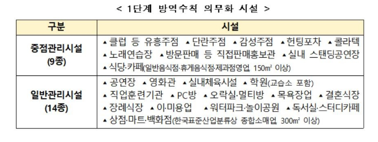 주요 다중이용시설은 오후 9시 이후에는 문을 닫고 상황이 더 악화해 1주간 일평균 800∼1천명이 이상 발생하거나 더블링 등 급격한 환자 증가세가 확인되면 전국이 3단계로 격상 ㅜㅜ