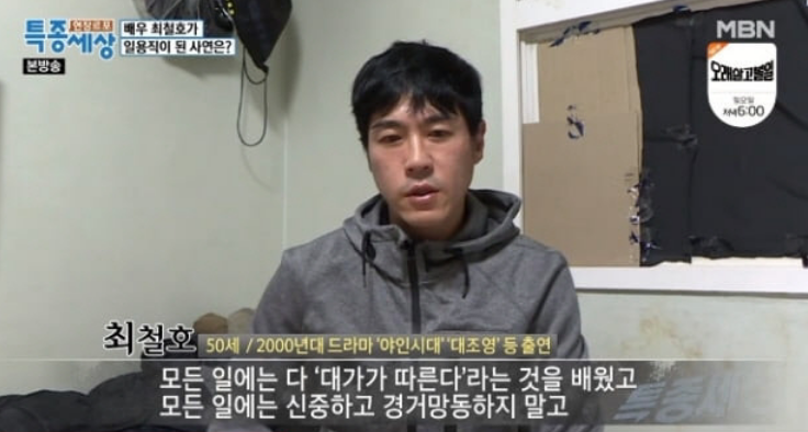 배우 최철호는 현재 원룸에서 물류센터 동료들과 살고 있으며