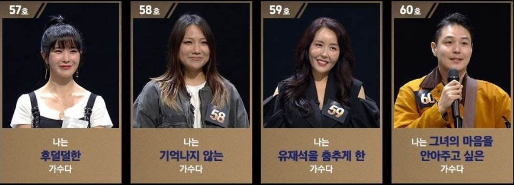 57호 레인보우 조현영, 58호 슈스케1 길학미, 59호 루머스 정유경, 60호 제프,