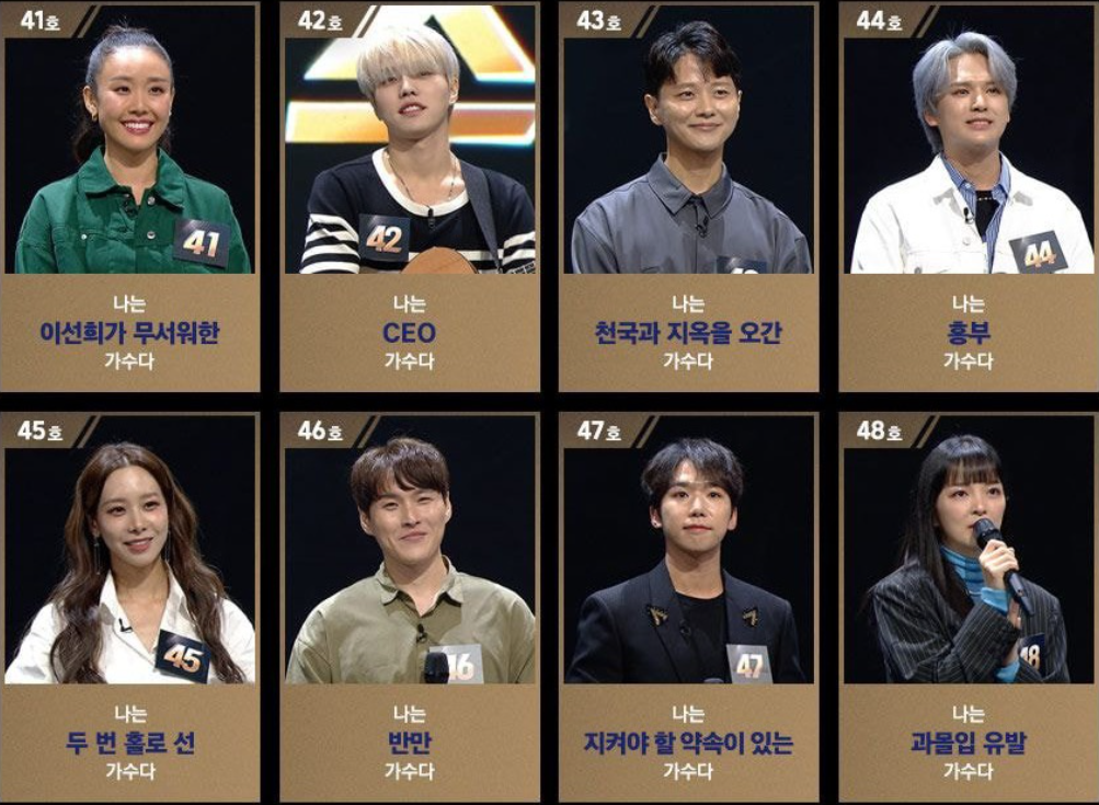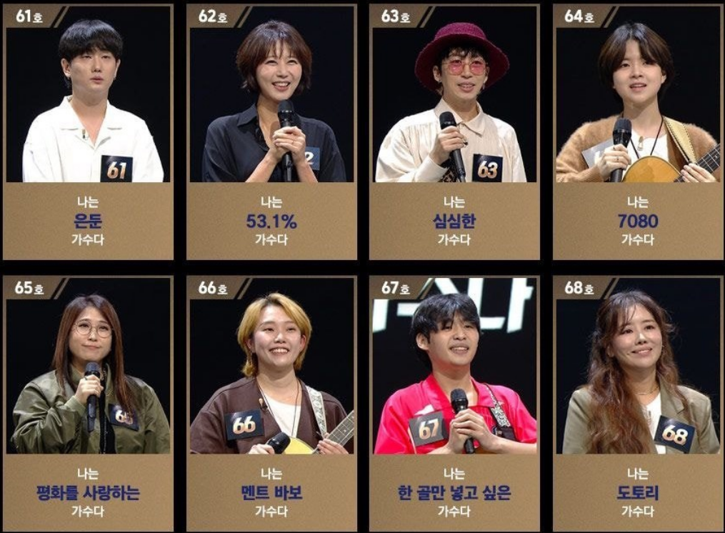 이상으로 싱어게인 참가자 73명에 대하여 간락하게 알아봤습니다.