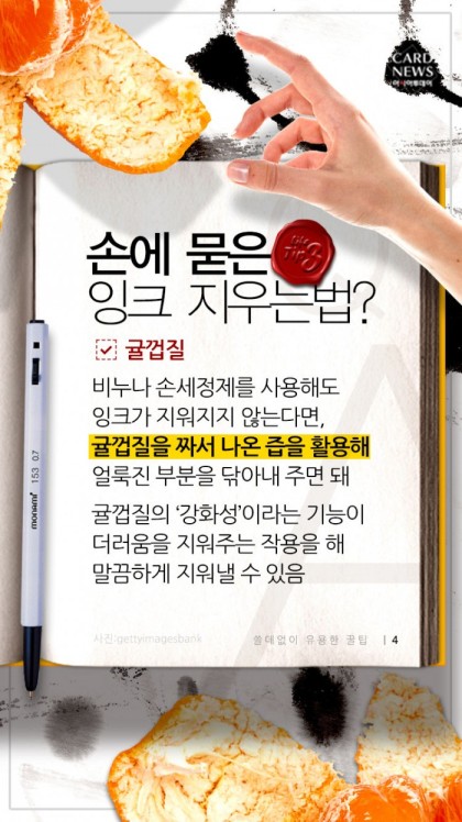 귤껍질을 이용해서 간단하게 잉크를 지울 수 있어요