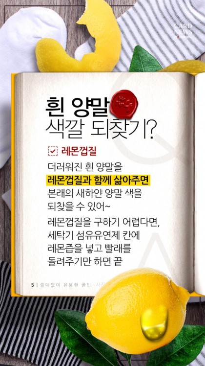 빨래를 할때 레몬껍질을 함께 삶아주시면 본래의 색인 하얀색을 되찾을 수 있다는 사실