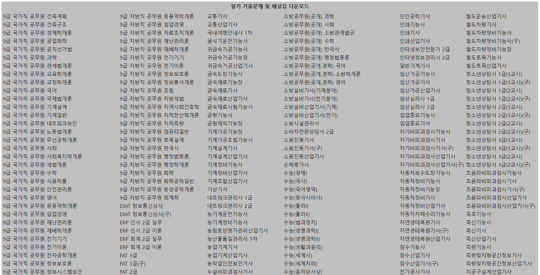 워드, 컴퓨터활용능력, 컴활, 1급, 2급, 기사, 산업기사, 기능사, 기능장, 한국사능력검정시험 등 다양한 기출문제들을 풀어 볼 수 있는 장점이 있으며 이 모든 것을 회원가입 하지 않고 무료로 이용할 수 있어서 많은 사람들에게 사랑받고 있습니다.