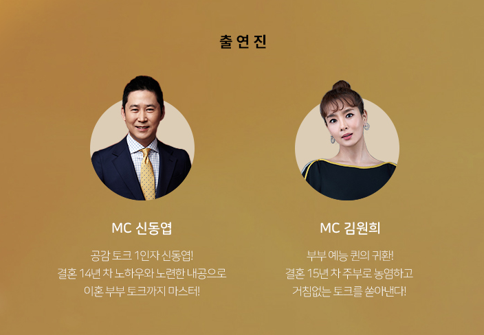 공감 토크 1인자 신동엽과 부부 예능 퀸 김원희가 명불허전 호흡과 더불어 캐미 좋기로 소문난